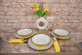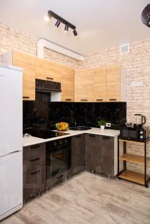 Кухня, оснащенная всем необходимым для приготовления и употребления пищи.