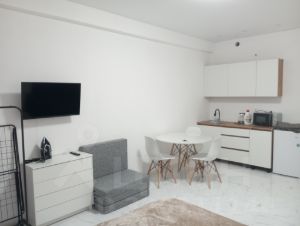 Светлая чистая студия с новым ремонтом, мебелью и необходимой техникой.