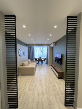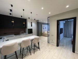 Сдается уютная двухкомнатная квартира с дизайнерским ремонтом в современном доме 2018 года постройки. Квартира расположена на 7 этаже 26-этажного монолитного здания. Общая площадь составляет 55 кв. м, жилая площадь — 20 кв. м, а просторная кухня — 25 кв. м. Высокие потолки 2.8 метра создают ощущение простора и света.