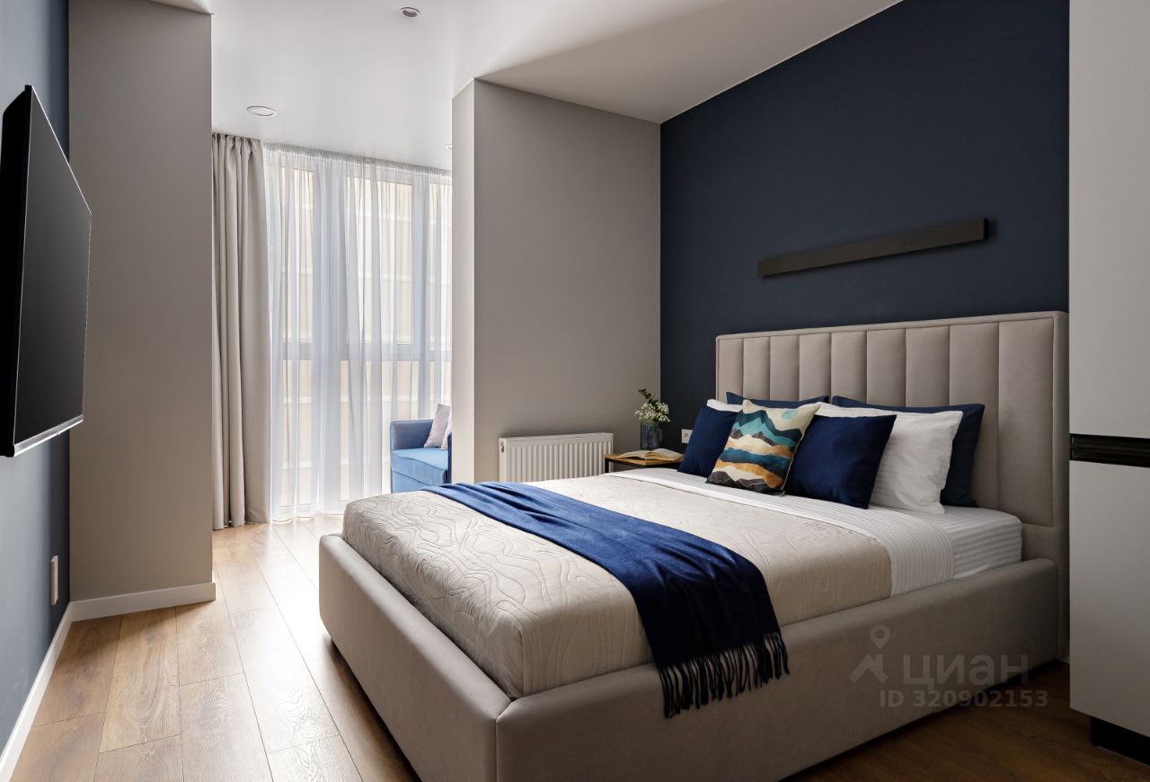Спальная зона: кровать 160200 с ортопедическим матрасом, SMART-телевизор, сплит-система, затемняющие шторы блэкаут. Дополнительно: диван-кровать 140200