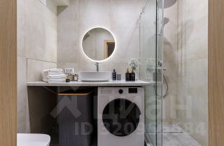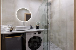 Ванная комната: душевая кабина, набор банных принадлежностей, мягкие полотенца, фен, стиральная машина
