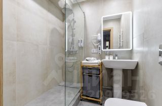 Ванная комната: душевая кабина, набор косметики (гель, шампунь, мыло), фен