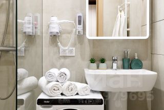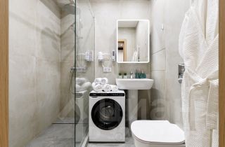 Ванная комната: душевая кабина, набор косметики (гель, шампунь, мыло), фен, стиральная машина