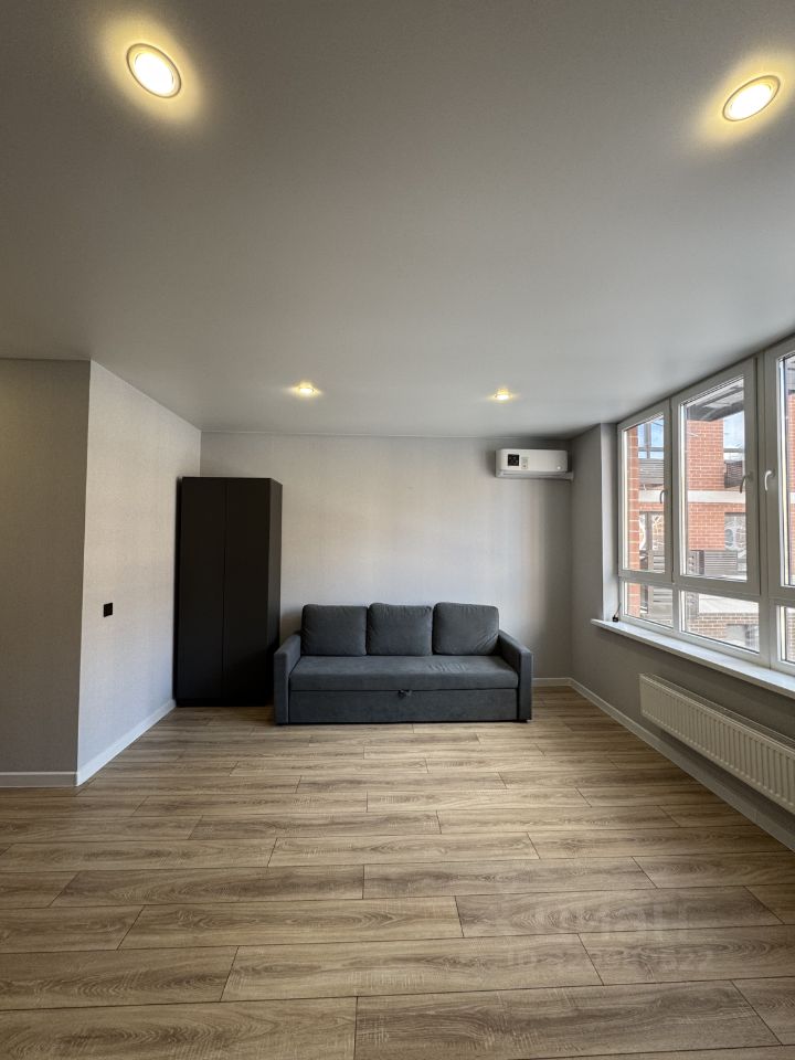 В студии выполнен евроремонт, что создает комфортную атмосферу. Комната и кухня меблированы, поэтому вам не придется беспокоиться о покупке мебели. Ванная комната оборудована ванной, а из техники есть кондиционер, холодильник и стиральная машина. Квартира подключена к интернету, поэтому вы всегда будете на связи.
