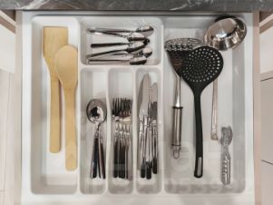 7. Есть все необходимое для жизни (постельное бельё, полотенца, посуда на 6 персон 48 предметов, набор ножей ,кастрюли, сковородки и другая кухонная утварь.