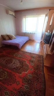 В квартире есть всё необходимое для комфортного проживания. Сделан косметический ремонт, установлена мебель на кухне и в комнате. Для вашего удобства квартира оснащена кондиционером, холодильником, телевизором и стиральной машиной. Ванная комната оборудована ванной, а из окон открывается вид на улицу. Также имеется балкон, где можно наслаждаться свежим воздухом.