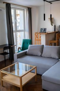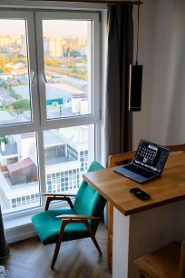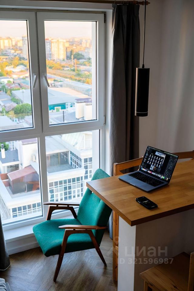 Сдаю просторную светлую студию в ЖК "Большой" с шикарным видом. 1 минута до остановки трамвая, в ЖК есть спортзал, супермаркет и рестараны.