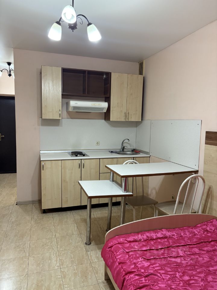 Уютная, светлая студия с мебелью и техникой.