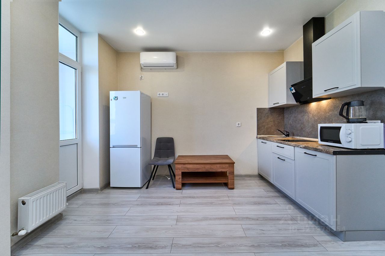 В квартире выполнен евроремонт, который создает атмосферу уюта и современности. Планировка студии включает в себя удобную кухню площадью 4.59 кв. м, оборудованную необходимой мебелью и техникой. В вашем распоряжении холодильник и стиральная машина. Ванная комната оснащена современной сантехникой, в том числе ванной. Пространство студии грамотно зонировано для комфортного проживания.