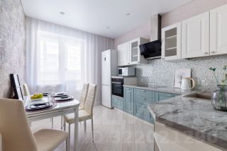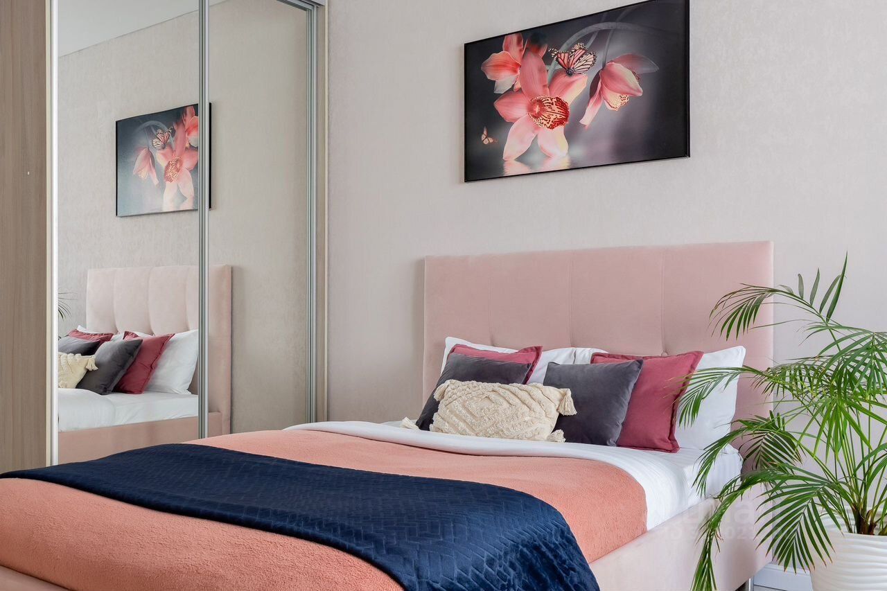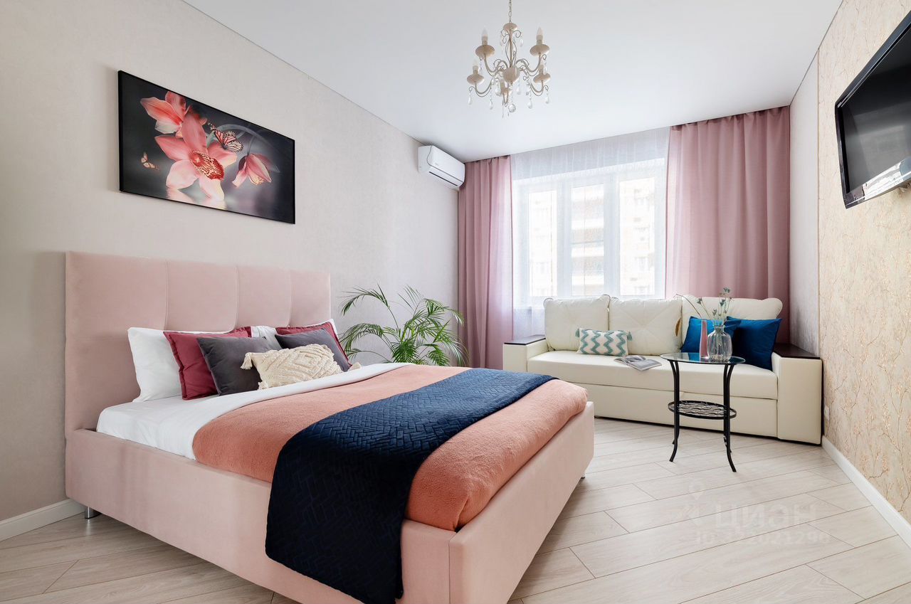 В вашем доступе светлая квартира 41 м². В спальне находится кровать, ТВ, комод, шкаф, интересные предметы интерьера. В кухне удобный кухонный гарнитур со всей посудой и техникой (электроплита, микроволновка, холодильник, тостер, духовой шкаф), стол, 4 стула. В ванной комнате Вас ждут чистая сантехника, полотенца и гигиенические принадлежности.