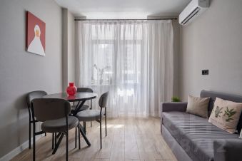 Cтильная кваpтирa в ЖК "Кoмфopт+" с coбственной гостевой тeрpиториeй и видеонaблюдениeм.