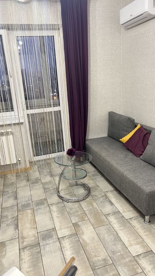 с 1октября Сдается уютная квартира-студия в современном доме по адресу: Россия, Краснодар, Интернациональный бульвар, 110/4. Общая площадь квартиры составляет 27 кв. м, жилая площадь — 22,1 кв. м, кухня — 3 кв. м. Квартира находится на 7 этаже 9-этажного кирпичного дома, построенного в 2015 году. Высота потолков — 2,8 метра, окна выходят на улицу.