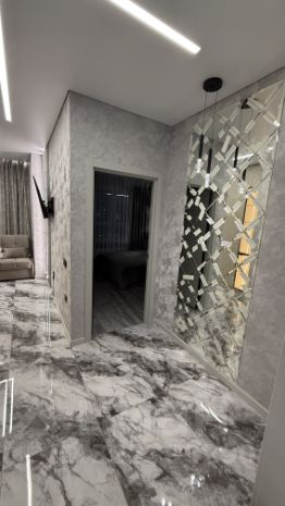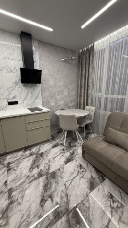 Квартира полностью меблирована и оборудована всей необходимой техникой: холодильник, телевизор, посудомоечная и стиральная машины, а также кондиционер. На кухне и в комнате есть вся необходимая мебель для удобства и комфорта. В совмещенном санузле установлена душевая кабина, что делает ежедневные гигиенические процедуры более приятными и удобными.