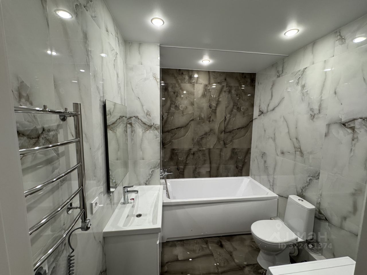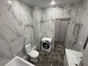 В санузле новая стиральная машина, ванная, удобный большой умывальник и полотенцесушитель.