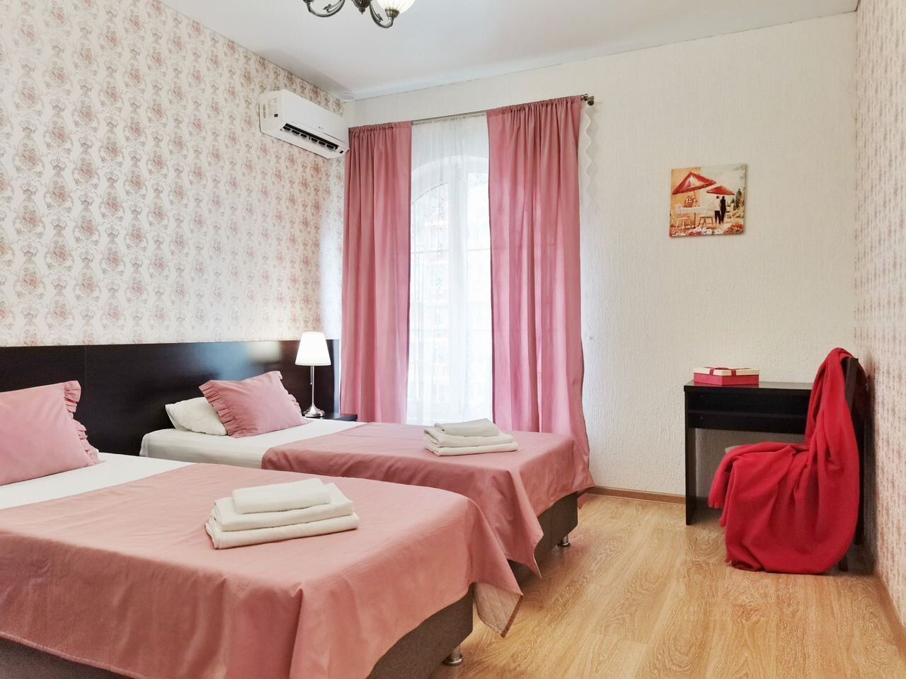 В квартире имеются две изолированные комнаты со спальными местами, кондиционер, телевизор, кухонный уголок, санузел с душевой кабиной.