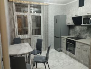 Квартира оформлена в стиле "Евроремонт" и оборудована всеми необходимыми для комфортной жизни элементами. В комнате и на кухне есть мебель, а также вся необходимая техника: кондиционер, холодильник, телевизор и стиральная машина. В ванной комнате установлена ванна.