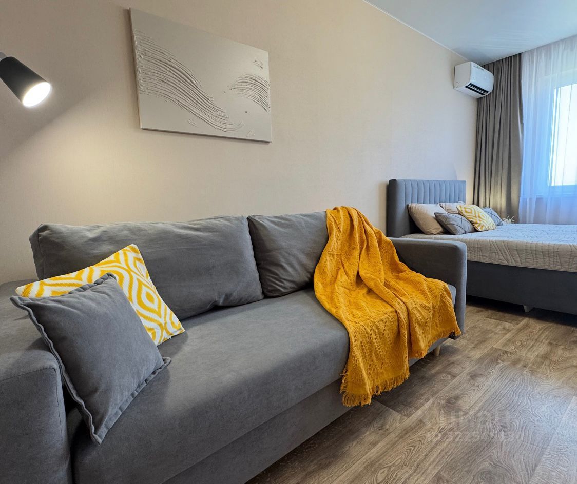Квартира полностью готова для комфортного проживания: в наличии современная мебель как в комнате, так и на кухне. Из техники есть всё необходимое: кондиционер для жарких дней, холодильник для хранения продуктов, телевизор для отдыха и стиральная машина для вашего удобства. Санузел совмещённый, в нём установлена ванна — идеальное место для релакса после рабочего дня.