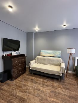 - Комната с двуспальной кроватью и новым диваном Аскона