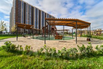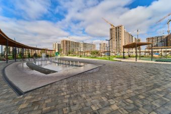 Двор выходит на шикарный собственный парк с фонтанами зонами отдыха,спорта и тд.