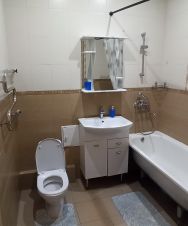 В квартире есть всё необходимое для комфортного проживания: косметический ремонт, мебель в комнатах и на кухне. В санузле установлена ванна. Для вашего удобства предусмотрены кондиционер, холодильник, телевизор и стиральная машина, а также интернет.