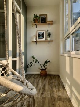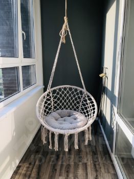 Подвесное кресло-гамак в лоджии для расслабления и успокоения.