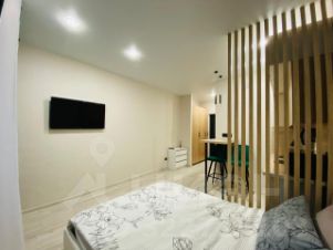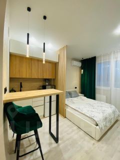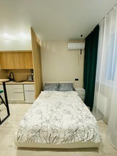 В квартире сделан дизайнерский ремонт. Она полностью меблирована: есть все необходимое для комфортной жизни. На кухне и в комнате установлена современная мебель, а также вся необходимая техника: кондиционер, холодильник, телевизор и стиральная машина. Санузел совмещенный, оснащен ванной. Для вашего удобства в квартире проведен интернет.