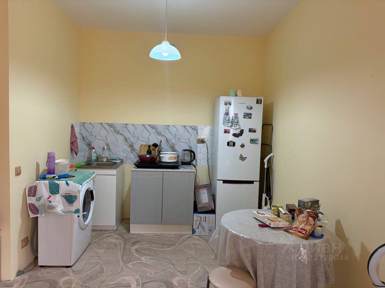 В квартире мебель, холодильник, плита индукционная, стиральная машинка, кондиционер, двухспальная кровать, столы, матрас ортопедический, интернет.