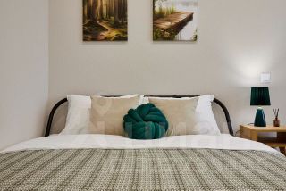 В зоне спальни : 2-х спальняя кровать , прикроватные тумбочки , Сплит система , тв