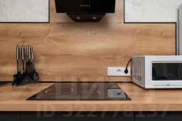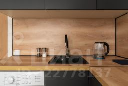 Укомплектованная техникой и посудой кухонная зона