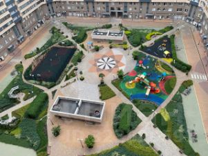 Квартира находится в жилом комплексе бизнес-класса в самом центре Краснодара — рядом улица Красная и всё необходимое для комфортной жизни: магазины, школы, кафе, медицинские учреждения, остановки общественного транспорта.