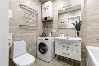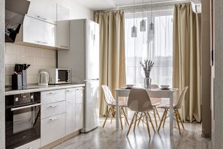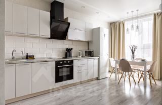 Кухня для гурманов: Огромный кухонный гарнитур оснащен всей необходимой современной техникой: стиральной и посудомоечной машинами, микроволновой печью, духовкой и вместительным холодильником. Создавайте кулинарные шедевры и наслаждайтесь ими в стильной обеденной зоне на 4 персоны идеально для семейных ужинов или встреч с друзьями.