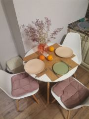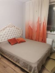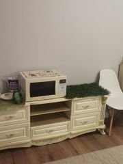 Мебель: Кровать с ортопедическим матрасом, шкаф для одежды, комод, обеденный стол.