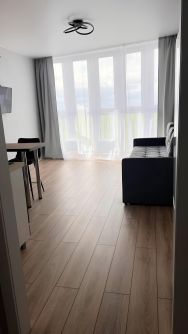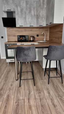 Студия укомплектована всем необходимым : стиральная машина с функцией сушки белья , сплит-система, телевизор, холодильник, электроплита, микроволновая печь, духовой шкаф, вытяжка .