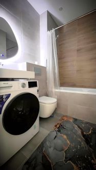• Дом расположен в окружении всей необходимой инфраструктуры: магазины, аптеки, остановки общественного транспорта, школы и детские сады - всё в шаговой доступности.