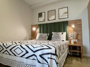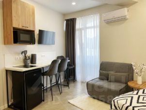 В квартире сделан косметический ремонт, поэтому всё выглядит свежо и аккуратно. Студия полностью обставлена мебелью: в комнате и на кухне есть всё необходимое для комфортного проживания. Для вашего удобства установлены кондиционер, холодильник, телевизор и стиральная машина. Совмещённый санузел оборудован душевой кабиной, что позволяет быстро освежиться после долгого дня.