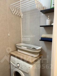 Просторный санузел, оборудованный всей необходимой сантехникой и стиральной машинкой.