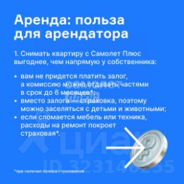 Квартира сдаётся без залога со страховкой от компании "Самолет Плюс".