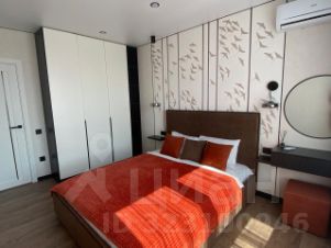 Комната достаточно просторная 18 кв. м. Установлена двуспальная кровать с новым матрасом, трёхстворчатый шкаф, навесная тумба с зеркалом, прикроватные места для хранения, кондиционер, телевизор.
