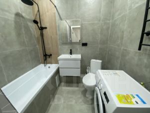 Жилье оснащено всем необходимым: двуспальная кровать с новым матрасом, удобный диван, платяной шкаф; установлена бытовая техника: сплит-система, большая ТВ-панель, встроенная кухня, варочная панель, СВЧ-печь, стиральная машина-автомат, двухкамерный холодильник.