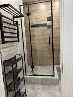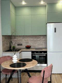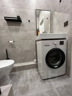 Квартира полностью готова для комфортного проживания. В интерьере использованы современные материалы и мебель. На кухне и в комнате вас ждет вся необходимая мебель. Из техники в квартире есть кондиционер, холодильник, телевизор и стиральная машина. Ванная комната оборудована душевой кабиной, что делает ее использование удобным и практичным.