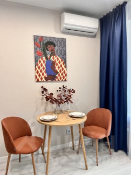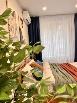 В квартире есть вся необходимая мебель и техника: кондиционер, холодильник, посудомоечная и стиральная машины, телевизор. Кухня оборудована современной мебелью и техникой. Ванная комната оснащена ванной. Просторная лоджия станет отличным местом для отдыха.
