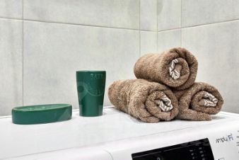 Сплит-система в каждой комнате, стиральная машина с режимом сушки, холодильник, духовой шкаф, варочная панель, чайник, кофемашина, фен, микроволновая печь.