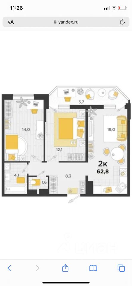 19 м²