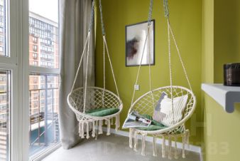 Фишкой данной квартиры является оборудованный двумя креслами-качелями балкон