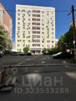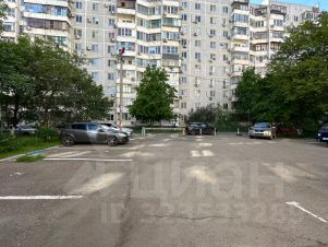 Парковка во дворе за шлагбаумом.
