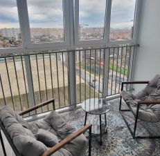 Квартира с евроремонтом, полностью готова для комфортного проживания. В комнате и на кухне есть вся необходимая мебель. Для удобства жильцов установлены кондиционер, холодильник, телевизор и стиральная машина. Из квартиры есть выход на уютную лоджию.