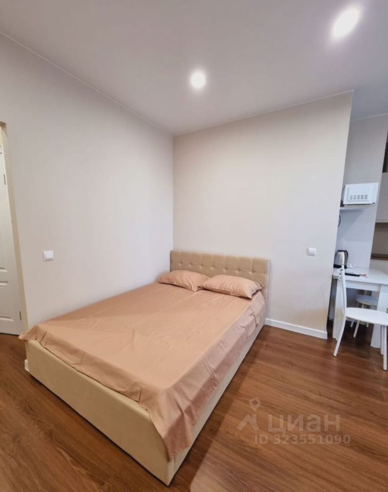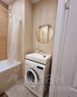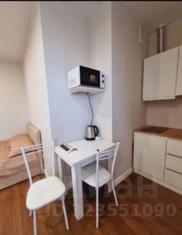 В квартире выполнен евроремонт, создающий атмосферу комфорта и уюта. Пространство студии организовано максимально функционально: зона кухни оборудована всей необходимой мебелью и техникой, включая холодильник и стиральную машину. В комнате есть удобная мебель, кондиционер и телевизор, что делает проживание комфортным. Санузел совмещенный и оснащен ванной.