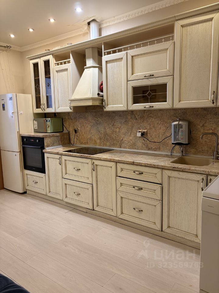 Кухонный гарнитур хороший, прослужит еще долго, ламинат и натяжной потолок - есть небольшие недочеты, легко исправить.