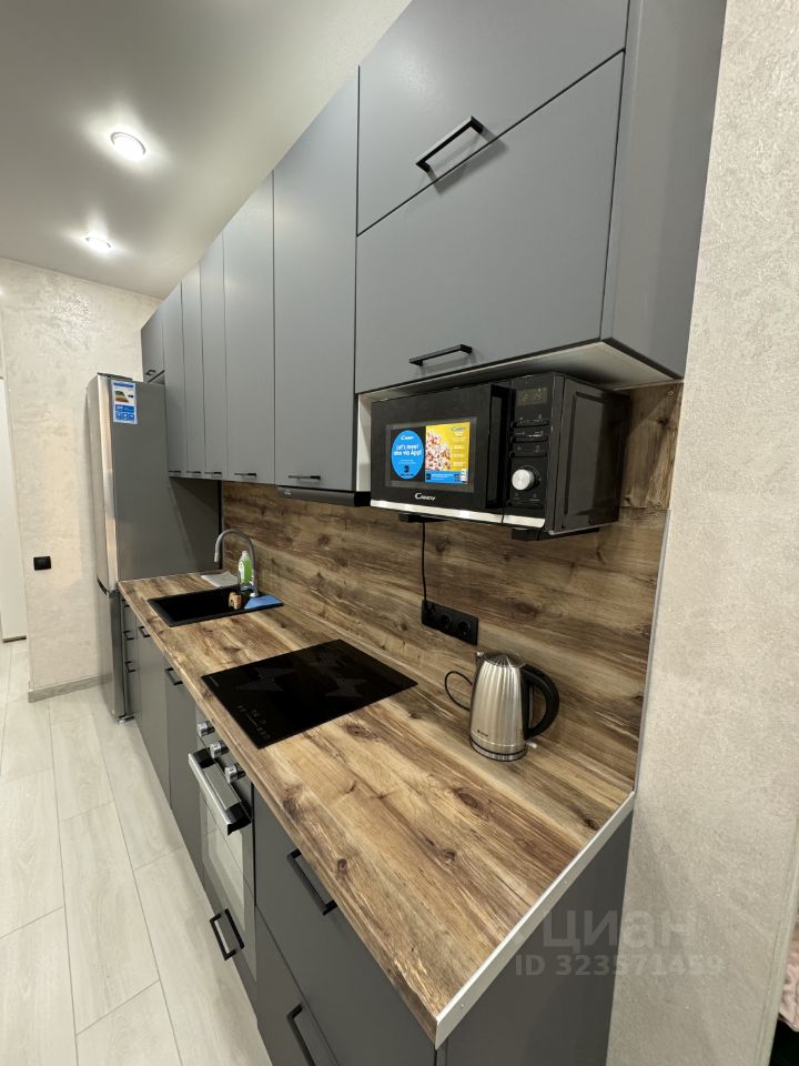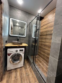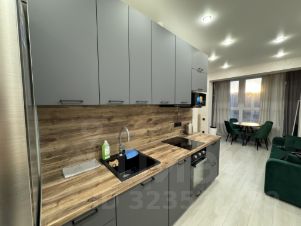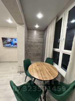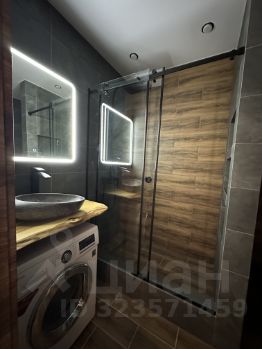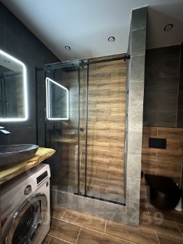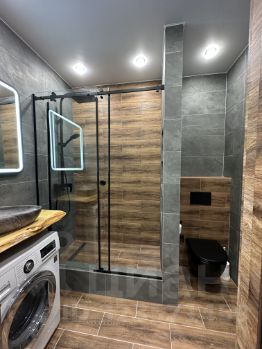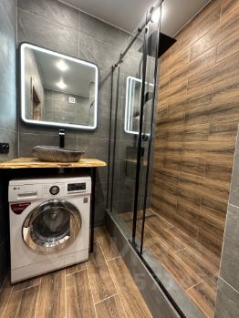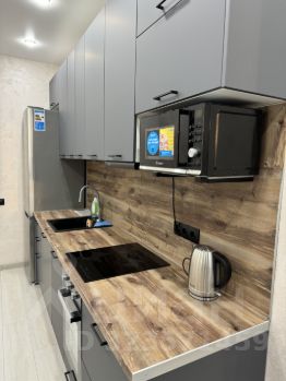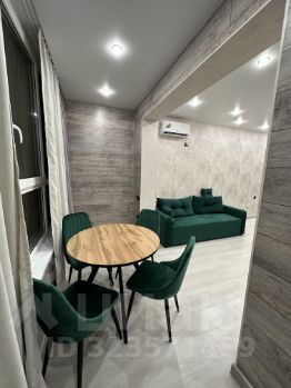 В квартире выполнен дизайнерский ремонт с использованием качественных материалов. Пространство грамотно зонировано, что делает студию удобной и функциональной. В квартире есть вся необходимая мебель как на кухне, так и в комнате. Из техники — кондиционер, холодильник, телевизор и стиральная машина. Санузел совмещенный, оборудован современной душевой кабиной и сантехникой.