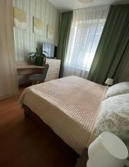 В квартире есть всё необходимое для комфортного проживания. Из бытовой техники; газовая варочная плита, электрический чайник, микроволновка, холодильник, кондиционер, стиральная машина, фен, сушилка для белья, утюг, гладильная доска, телевизор, постельное белье, подушки, одеяло, посуда.